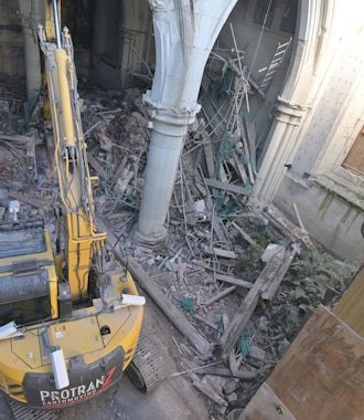 In a world first, a remote-operated digger is working inside Christ Church Cathedral to clear out debris, masonry and guano, a significant biohazard, and retrieve heritage fabric.